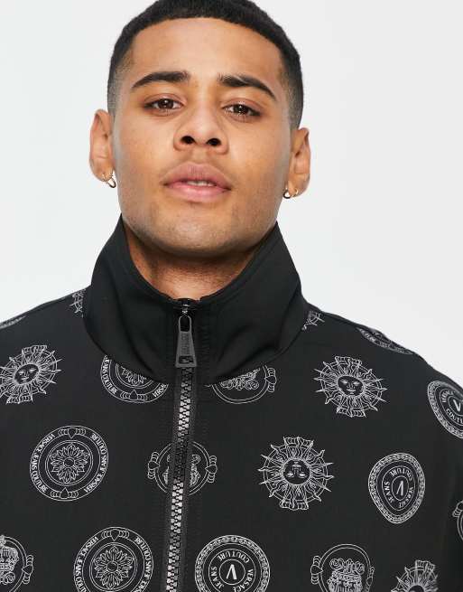 Versace Jeans Couture Trainingsjacke In Schwarz Mit Monogramm Print Asos